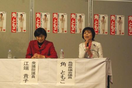 「まち」づくりは「ひと」づくりから~一人ひとりを大切にする島根をつくろう~をテーマに、江端貴子衆議院議員とトークショーを行いました。
