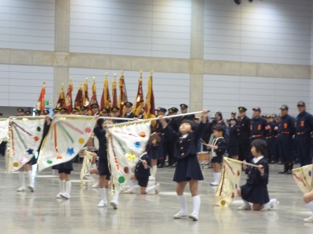 松江市の消防出初式にかわいい幼稚園児が華を添えました。