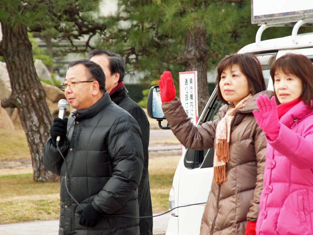 恒例となっている定例議会開催にあたり県庁前で朝街宣を行いました。
