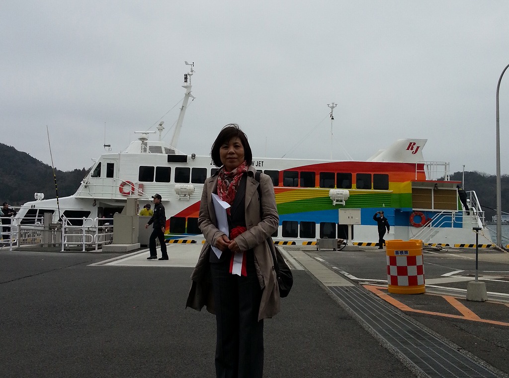 隠岐航路に超高速船レインボージェットが就航、七類港で記念式典がありました。