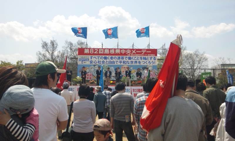 松江北公園で開かれた第82回島根県中央メーデーに参加しました。