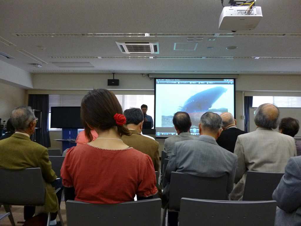 島根大学ホームカミングデーに合わせ、法文学部同窓会交流会が開かれ、第一部では、法文学部学生の鳥屋尾俊輔さんの震災ボランティア活動報告と学生とOBの意見交換がありました。